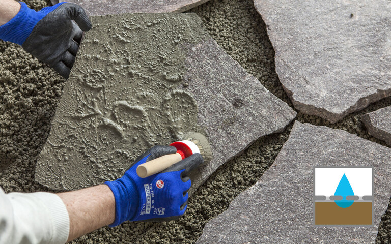 Pflastersteine, Natursteine, Terrassenplatten schnell und einfach mit dem wasserundurchlässigen Pflasterfugenmörtel verfugen.