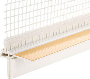 Selbstklebendes Anschlussprofil für Vorbaurollläden – gleicht Bewegungen von Fensterrahmen und Dämmung aus, schützt vor Feuchtigkeit und sorgt für einen dichten, seitlichen Anschluss an Rollladenführungsschienen im WDVS. Für 3 – 6 mm Armierung geeignet.