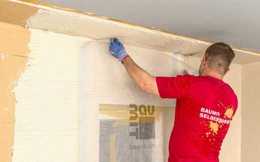 Damit das Armierungsgewebe seine Funktion als zusätzlichen Schutz wahrnehmen kann, muss es im oberen Drittel der Putz bzw. Spachtelung eingesetzt liegen und darf nach dem Einbau nicht mehr zu sehen sein. Es muss straff ohne Falten verlegt sein.