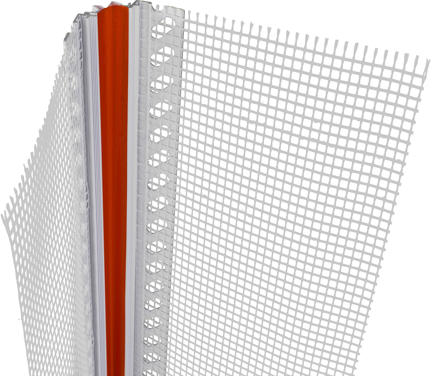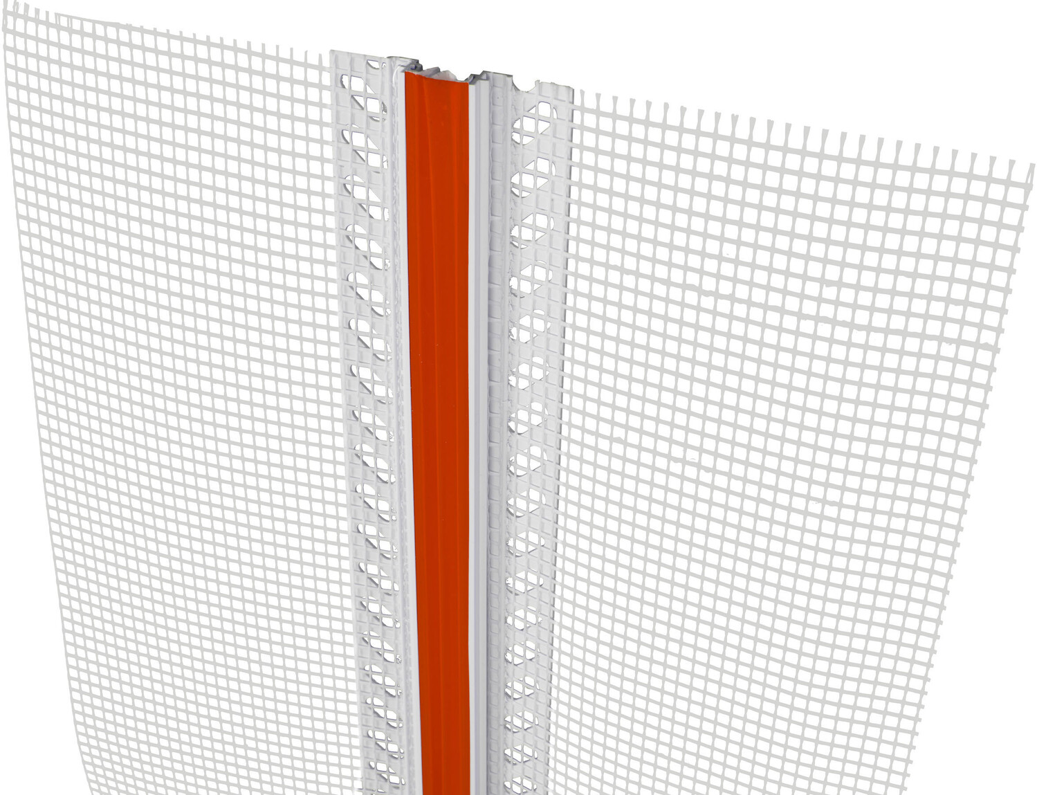 Dehnfugenprofil mit weißer, geschlossener Oberfläche für den Einsatz im WDVS (Fassadendämmung) auf ebenen Flächen oder in Innenecken. Mit beidseitiger Gewebefahne zum Einbetten in die Armierungsspachtelung.