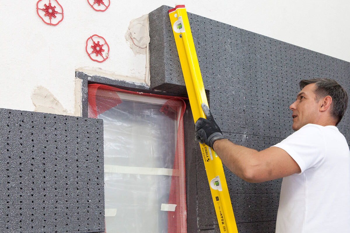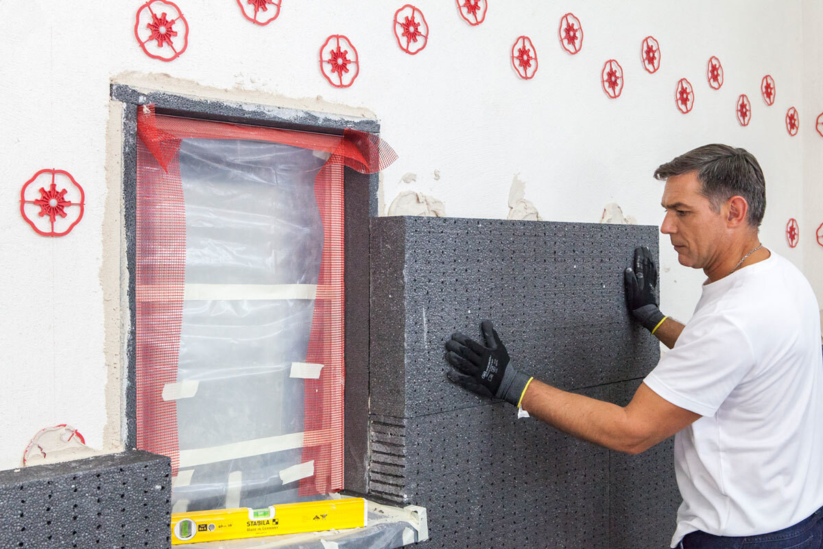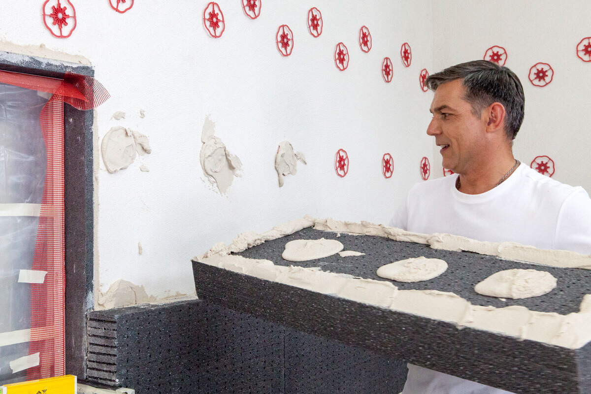 OPEN EPS Fassadendämmstoff an die Fassade kleben