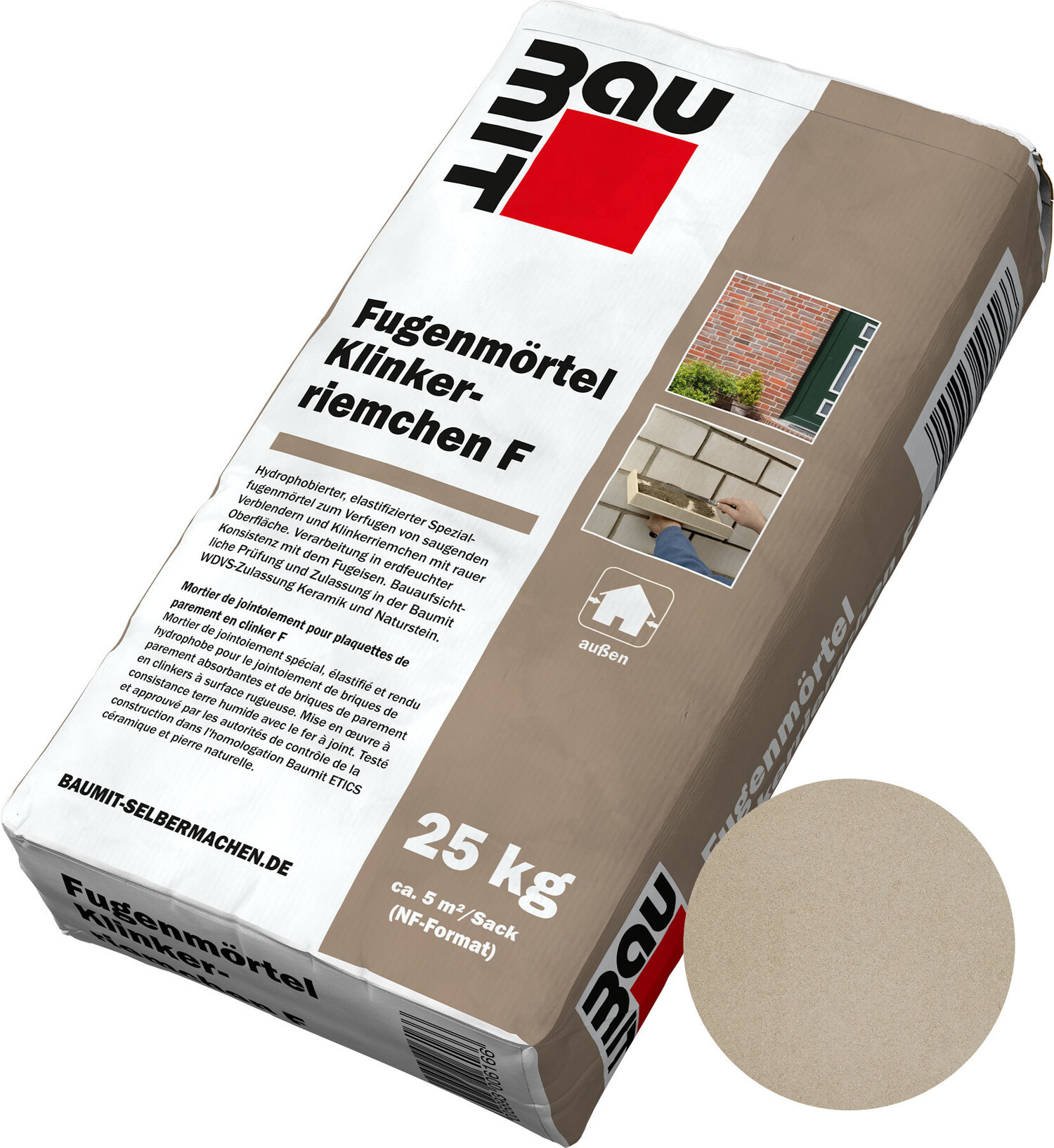 - Für das nachträgliche Verfugen von keramischen Belägen (Klinkerriemchen) oder Naturstein im Baumit Wärmedämm-Verbundsystem Keramik.