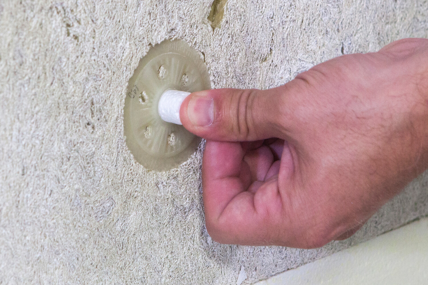 - Verschlusselement aus EPS zum Verschließen der Dübelhülse bei der oberflächenbündigen Montage des Schraubdübels S.