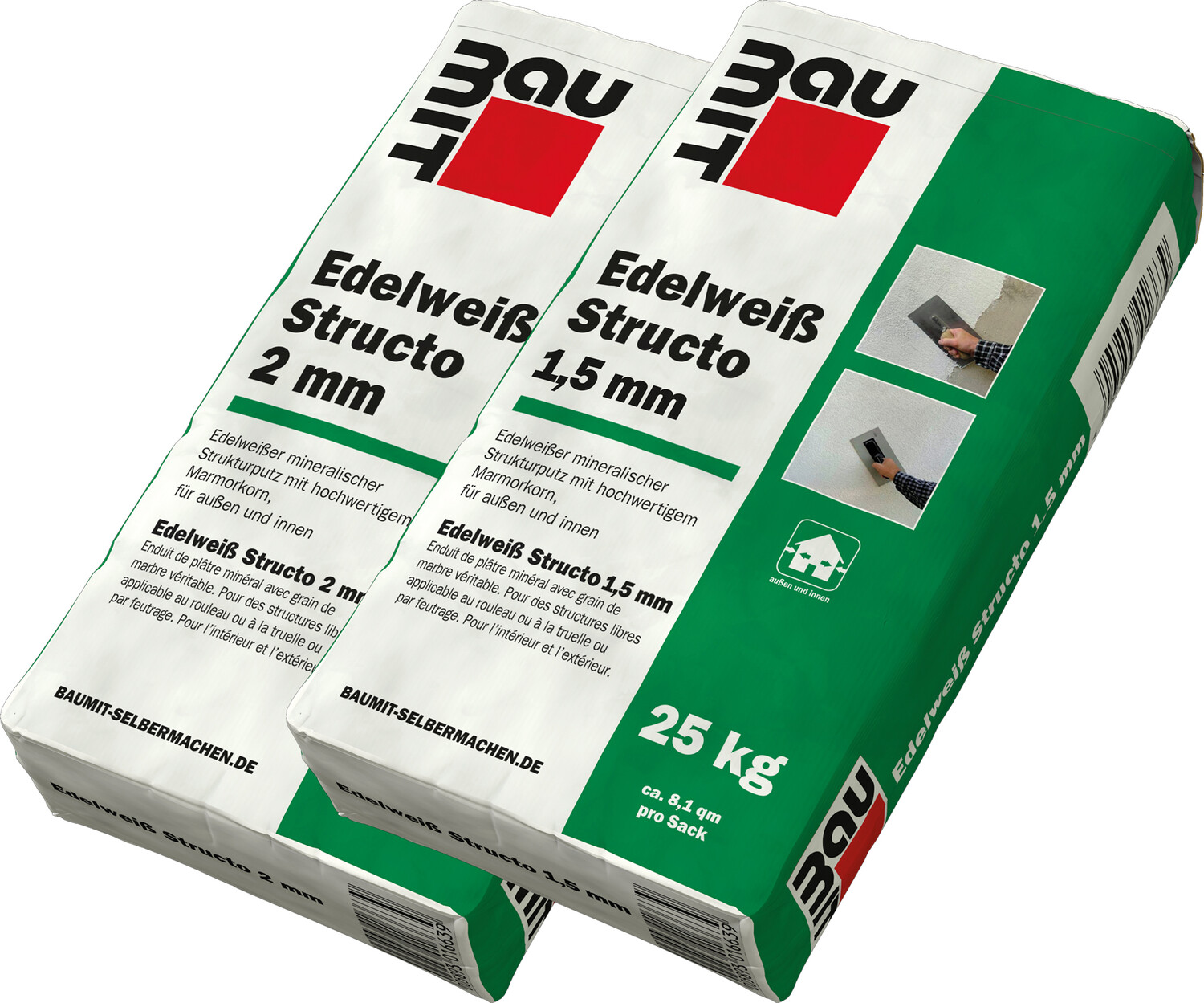 Brillantweißer, mineralischer Strukturputz mit Marmorkörnung für innen und außen. Strukturmöglichkeiten in Scheibenputzstruktur bzw. Vollabriebstruktur. Nach der Erhärtung überzeugt er durch seine wasserabweisende, witterungs- und frostbeständige Eigenschaften.