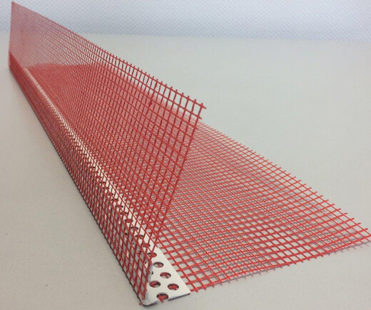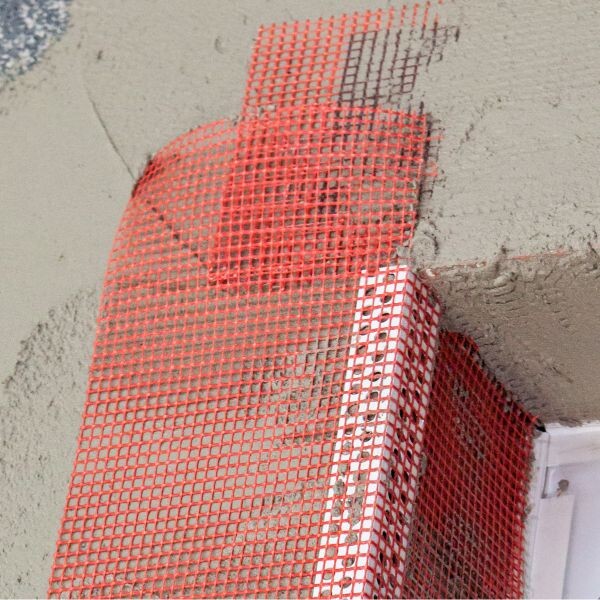 Setzen den Gewebeeckwinkel in den frisch aufgetragenen Klebespachtel und bette die beidseitigen Gewebefahnen mit einer rostfreien Glättkelle in den Kleber ein.