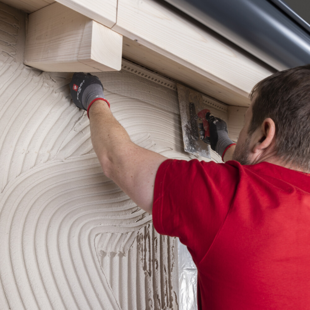 Durch die vielfältigen Baustellengegebenheiten können die von uns gezeigten Arbeitsschritte nicht alle Einzelfälle berücksichtigen. Sie zeigen den aktuellen Stand unserer Erfahrungen zum Zeitpunkt der Erstellung der Bilder und sind daher unverbindlich. Beachte in jedem Fall die Vorgaben des Plattenherstellers (Dämmung und Putzträgerplatte)