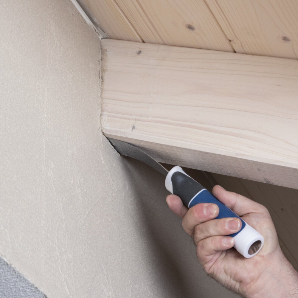 An Stoßbereichen, welche nicht mit dem Fensterbank- und Dachanschlussprofil ausgebildet wurden, trennst du den Armierungsspachtel mit einem Trennschnitt bzw. Kellenschnitt vom Bauteil. So verhinderst du eine unkontrollierte Rissbildung in diesen Stoßbereichen.
