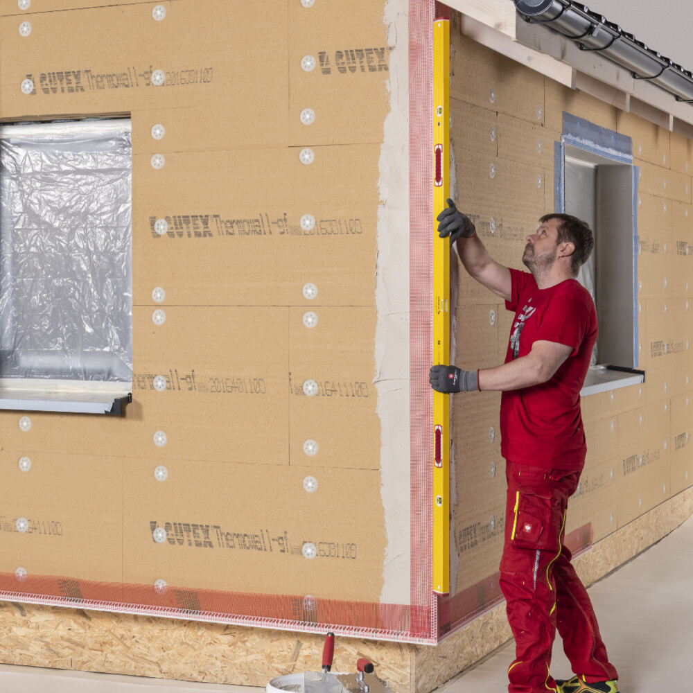 Die nachfolgende Bilderserie zeigt die Basisschritte zum Auftragen einer Armierungsspachtelung auf vom Platten-Hersteller und Baumit freigegebenen Putzträgerplatten aus Holzfaserdämmung im Außenbereich.