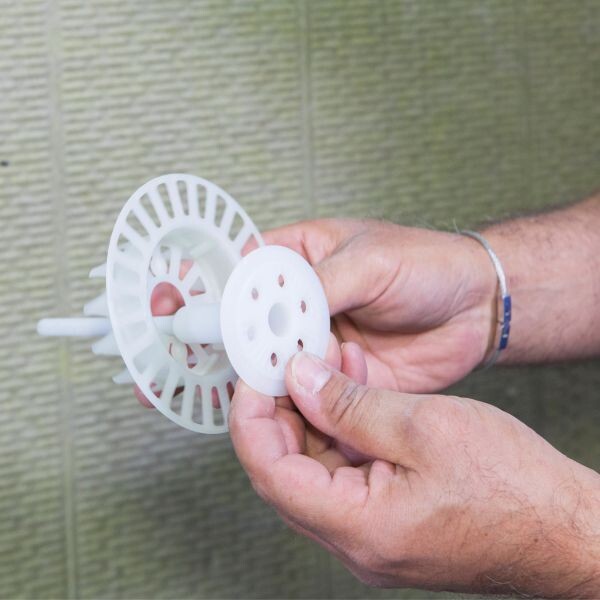 Schiebe den Baumit Schraubdübel in den Dübelteller bis der Teller des Dübels einrastet.