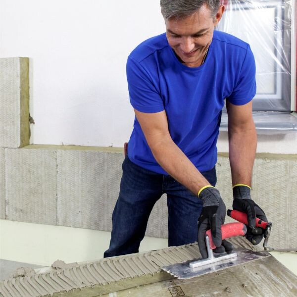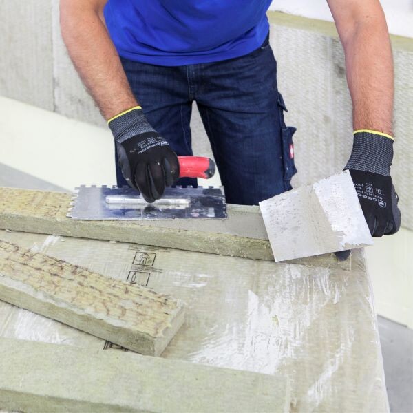 Trage auf die zugeschnittene Laibungsplatte den Klebespachtel Allround vollflächig auf.