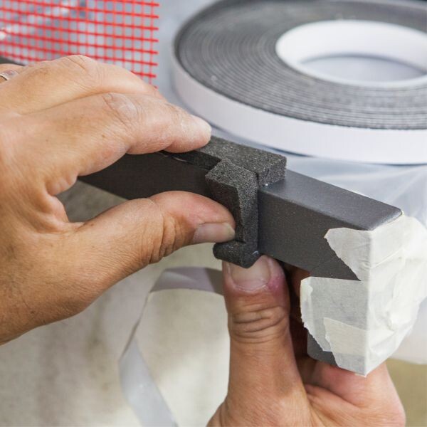 Klebe ein weiteres Stück Fugendichtband auf die seitliche Kante des Fensterbank-Endstückes.