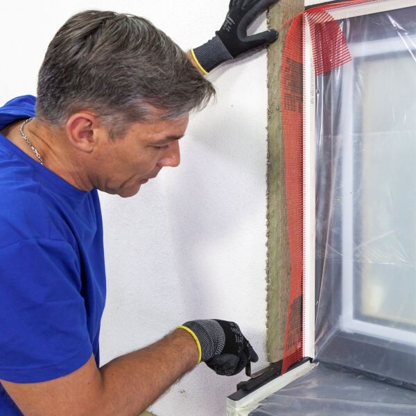 Mineralwolle Fensterabdichtung und Laibungsplatte kleben