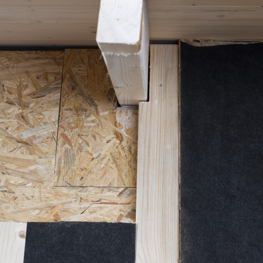 Prüfe wie viele Traghölzer du in der unteren Dämmebene benötigst und verteile die Traghölzer so, dass keine Wärmebrücken durch Lücken in der Dämmung entstehen können. Achte darauf, dass Traghölzer weit genug von Ecken oder Abschlüssen gesetzt werden, damit die Dämmung noch dazwischen eingesetzt werden kann.