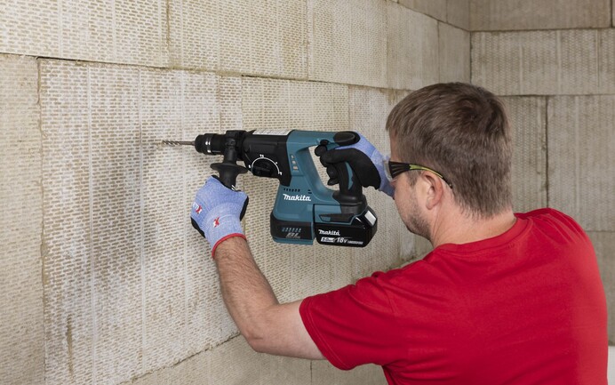 Mineralwolle-Fassadendämmplatten müssen immer zusätzlich zwingend verdübelt werden. Dafür brauchst du eine Bohrmaschine und einen leistungsstarken Akku-Schrauber mit 14 bis 18 Volt.