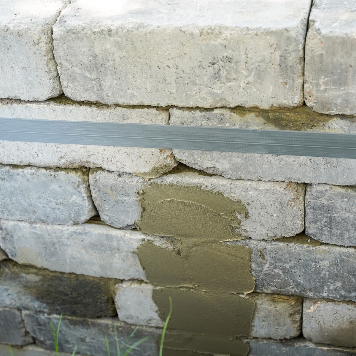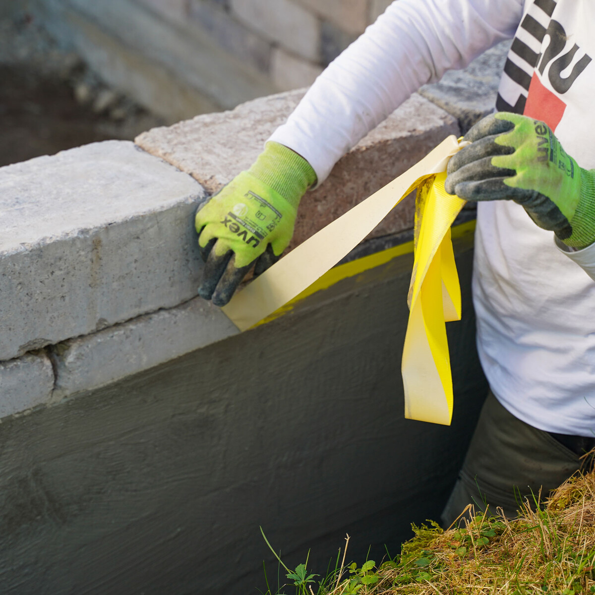 In unserem Beispiel dichten wir eine Gartenmauer ab, welche anschließend mit Erdreich angefüllt wird.