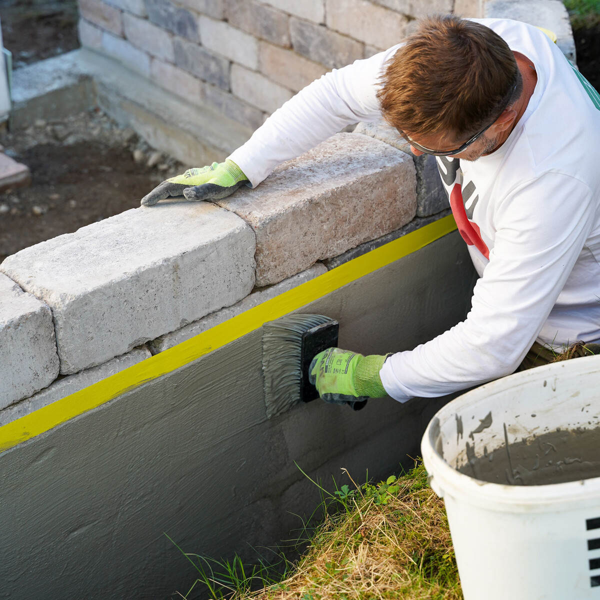 Außenwand der Gartenmauer mit Dichtschlämme abdichten