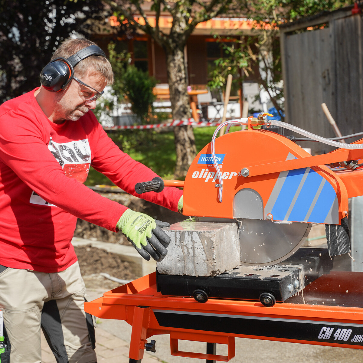 Betonsteine oder Natursteine sägen bzw. schneiden