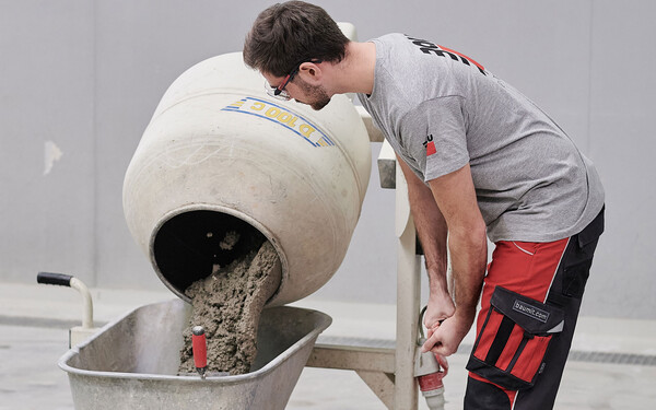 - Dann kannst du den Betonmischer einschalten bzw. mit dem elektrischen Rührgerät mit dem Mischen beginnen.
