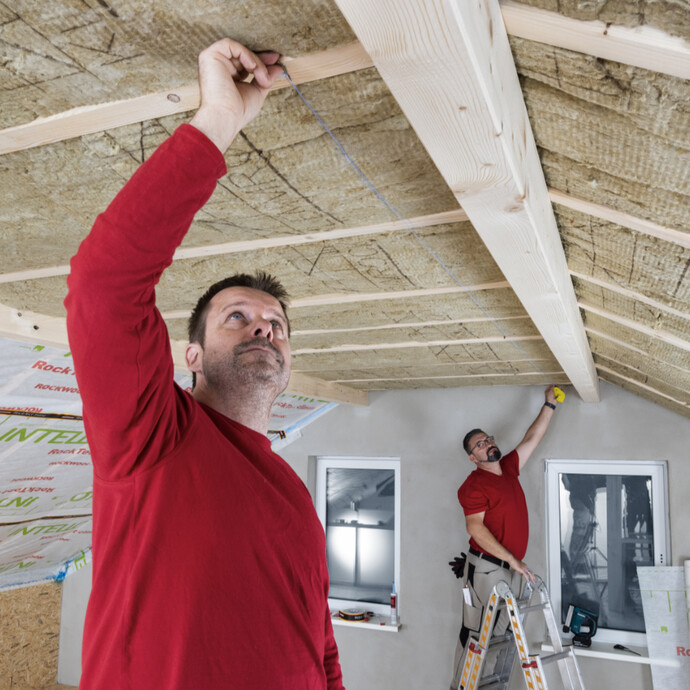 Bevor du mit der Verlegung des Kalkin Klima-Boards beginnen kannst, empfehlen wir dir den Einbau einer Untersparrendämmung als zusätzliche Dämmschicht und Installationsebene.