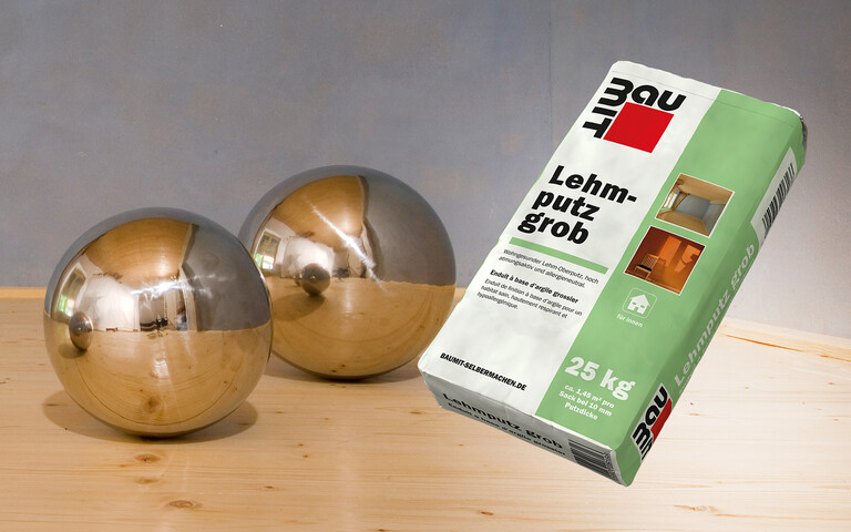 Lehmputz erhärtet rein durch die Verdunstung des Anmachwassers. Es findet keine chemische Reaktion wie beispielsweise bei Kalk- oder Zementputzen statt. Daher erreichen Lehmputze nicht die Festigkeiten eines Kalk- oder Kalkzementputzes, was sich auch in den möglichen Endbeschichtungen widerspiegelt. Für eine Verfestigung der Oberfläche bieten wir dir den Baumit Lehmfestiger an. Dieser besteht aus reinem Kaliwasserglas und verkieselt die Putzoberfläche. Die Abriebfestigkeit wird erhöht und Kreidung oder Absanden bestmöglich verhindert.