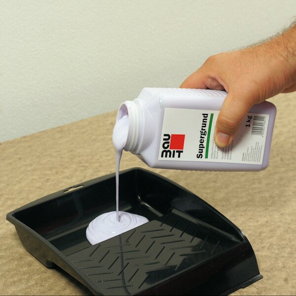 Für das flächige Auftragen des Baumit Supergrunds empfehlen wir dir den Einsatz einer Malerrolle mit kurzem Floor oder aus Schaumstoff. Dadurch wird der Supergrund gleichmäßig verteilt und beste Ergebnisse erzielt.
