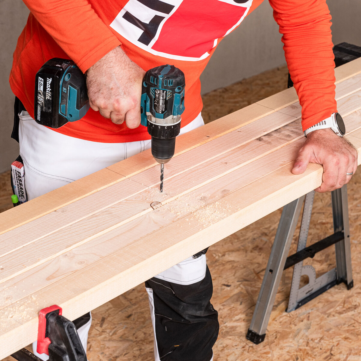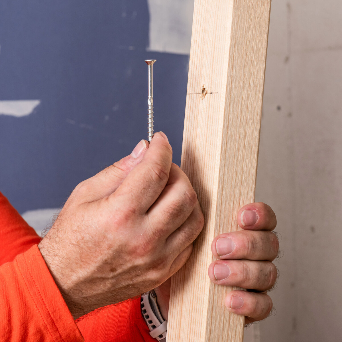 Verwende rostfreie Schrauben mit Teilgewinde, die zu deinen Dübeln passen. Wir arbeiten mit HECO-TOPIX-plus Schrauben mit Teilgewinde und Senkkopf.