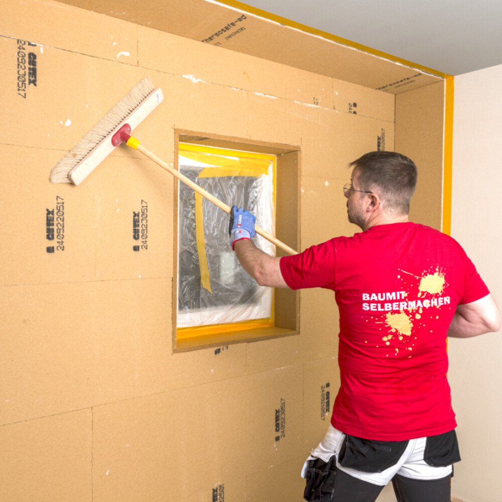 Die nachfolgend gezeigte Anleitung zum Aufbringen einer Armierungsspachtelung auf einer freigegeben Innendämmung, kannst du auch verwenden auf einer mit Kalk- oder Kalkzementputz verputzen, wassergeführten Wandheizung. Dafür muss die Putzlage komplett abgebunden und abgetrocknet sein.