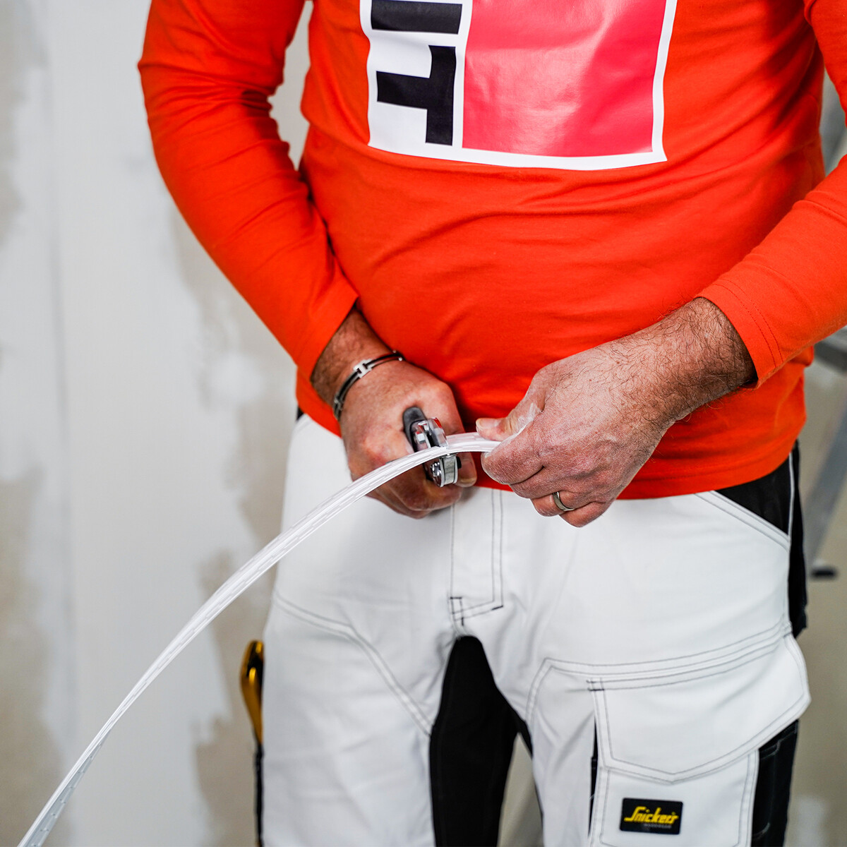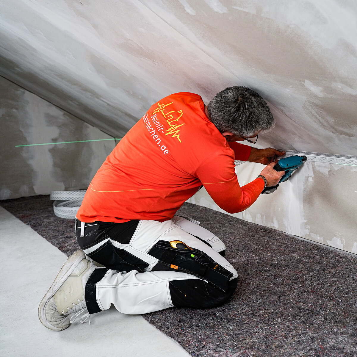 Bevor du das Profil einsetzt, muss die Montage der Trockenbauplatten vollständig und fachgerecht abgeschlossen sein. Auch die Fugenverspachtelung sollte idealerweise vorher fertiggestellt sein.