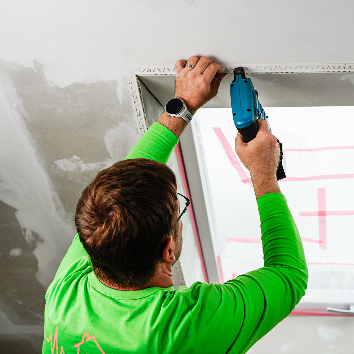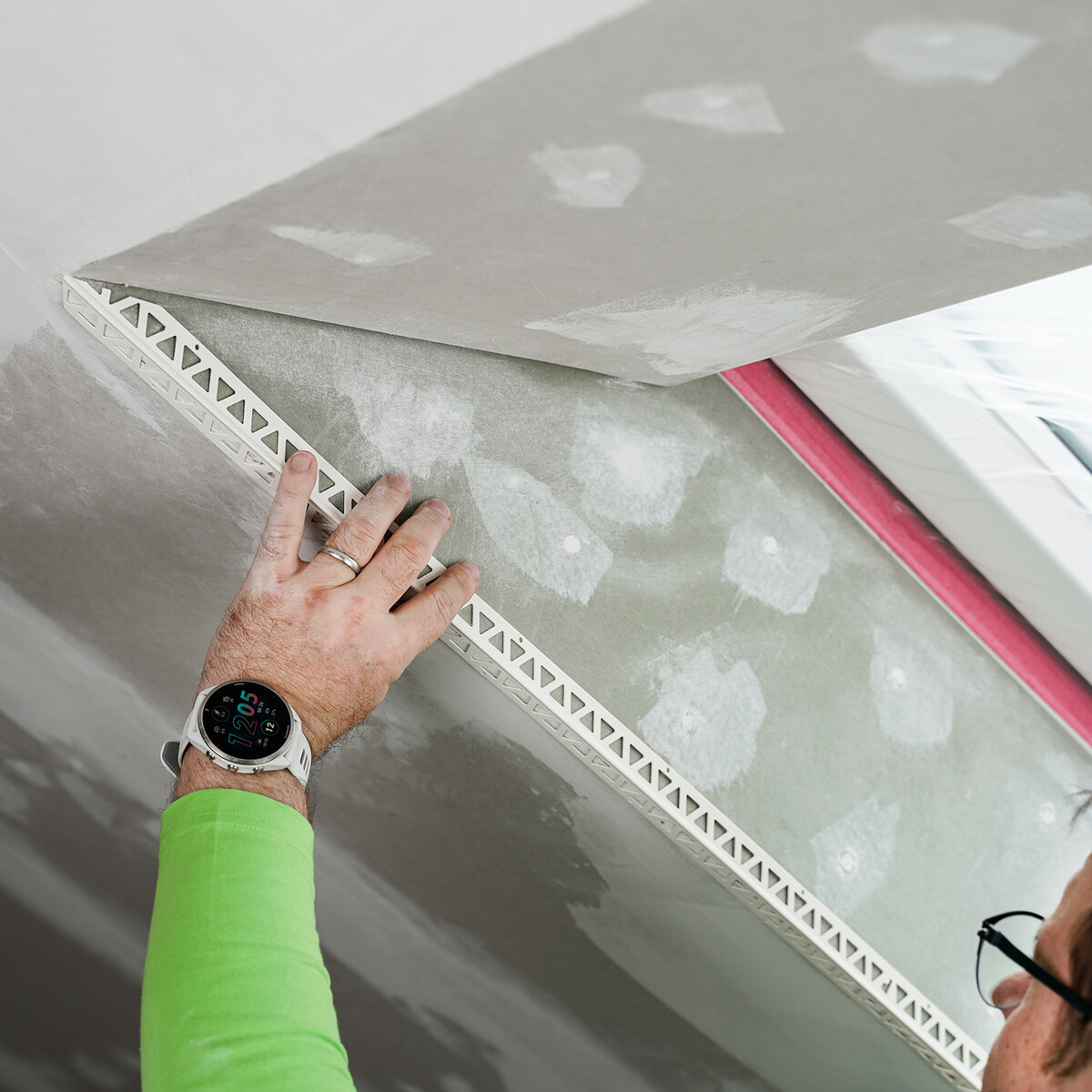 Alle freiliegenden Außenkanten von Trockenbauplatten – ob aus Gipskarton oder Gipsfaser – müssen zuverlässig vor Beschädigungen geschützt werden. Dafür werden Kantenschutzprofile, auch Eckwinkel genannt, eingesetzt. Diese werden nach dem Setzen vollständig in Spachtelmasse eingebettet und sorgen für stabile, saubere Kanten.