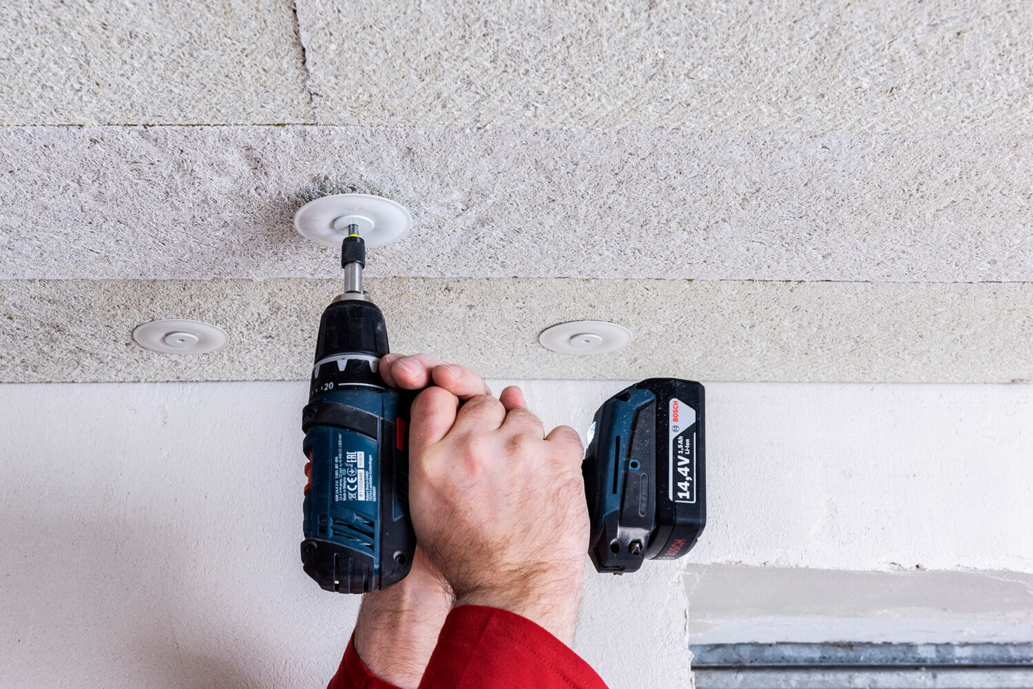 - Zur sicheren Befestigung von Deckendämmplatten auf Kellerdecken aus Beton.