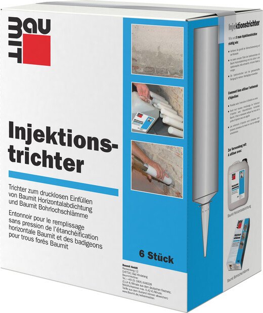 Injektionsmittel zum nachträglichen Einbringen einer dauerhaften Horizontalabdichtung gegen aufsteigende Feuchtigkeit im Mauerwerk im drucklosen Verfahren mit Injektionstrichtern. Mit langjähriger Systemerfahrung