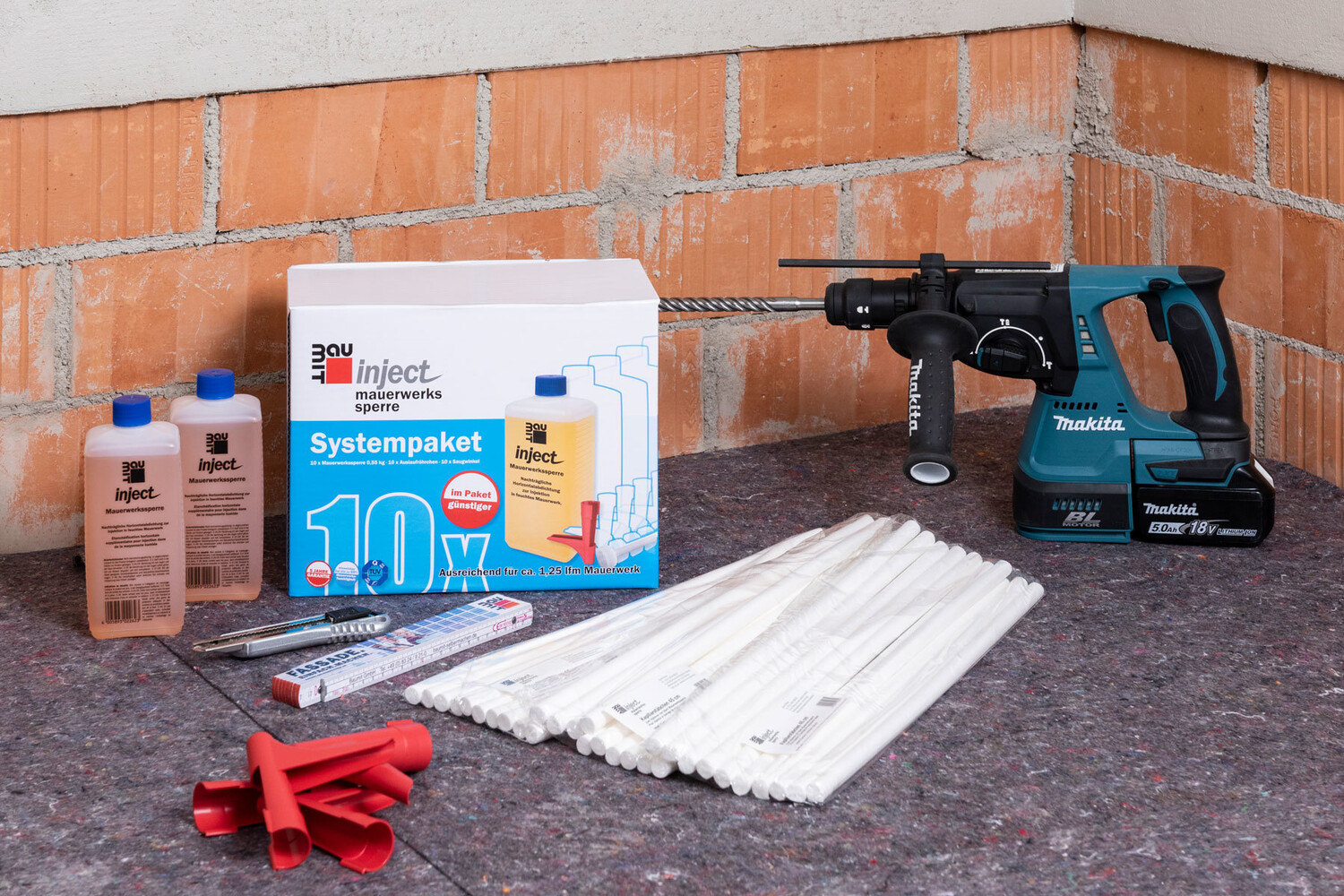 Eine einfache und sichere Variante, die du auch selber umsetzen kannst, ist das Baumit inject-System für einschaliges Ziegelmauerwerk mit durchgehender Lagerfuge.