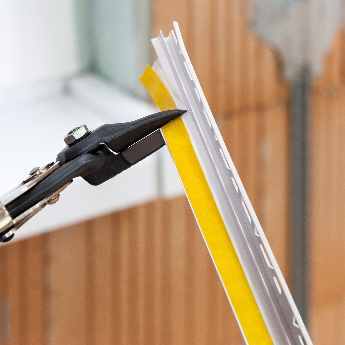 Eine Gehrungsschere ist eine Spezialschere, z.B. für Kunststoffprofile wie Anputzleisten, Eckprofilwinkel oder auch Fliesenabschlussleisten.